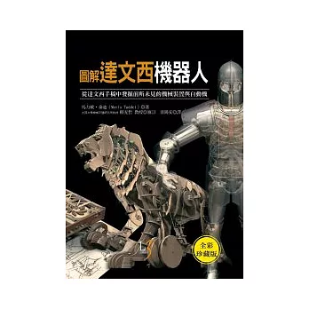 實體重現自走車、機器獅、機器武士!!1:1比例打造、採用當時可獲取的原材料!!在本書中,讀者將可以以創新的方式欣賞他的作品,我們將針對他的作品中最神秘難解、最具爭議性的幾個主題:自走車、機器獅以及機器武士加以實體重現,同時提出全新的理論。在這本書中,我們雖然「只」(only)探討了三個主題:自走車、機器獅和機器武士,然而事實上,這本書只研究了現存5000多頁達文西手稿中的5頁。但是在這幾頁中,我們看到了數百具機器和相關的構想,幫助我們發現挖掘和徹底瞭解這些機器人和達文西的設計方法。◎與達文西做最近距離的接觸,向大師學習!!